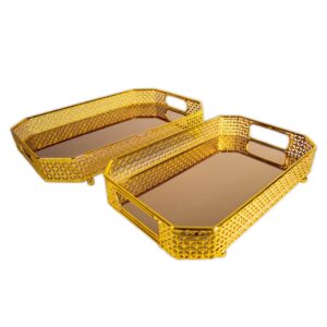 Série de 2 Plateaux Dorés en métal et verre Motif 3