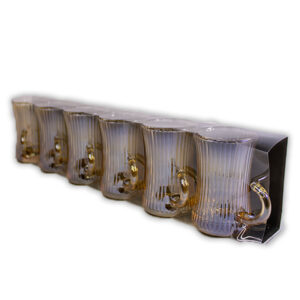 Coffret 12 Pièces de Thé – 6 Tasses & 6 Sous-Tasses – Motif Doré